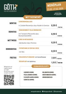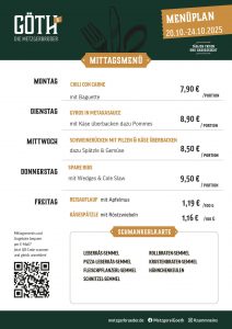 Mach’s dir bequem – wir machen dein Mittagessen und haben jede Woche neue Angebote für dich. Und damit du schon weißt, was es gibt, sobald wir es wissen, trägst du dich hier in unsere Mailingliste ein.